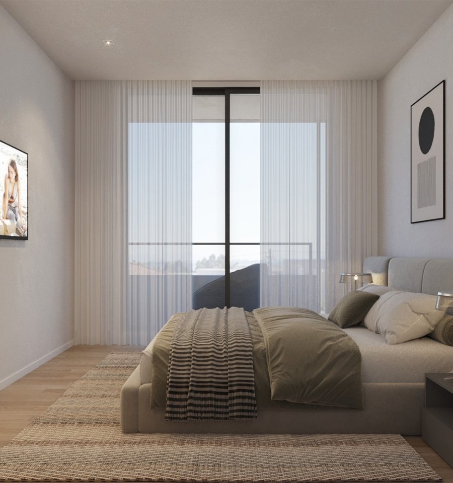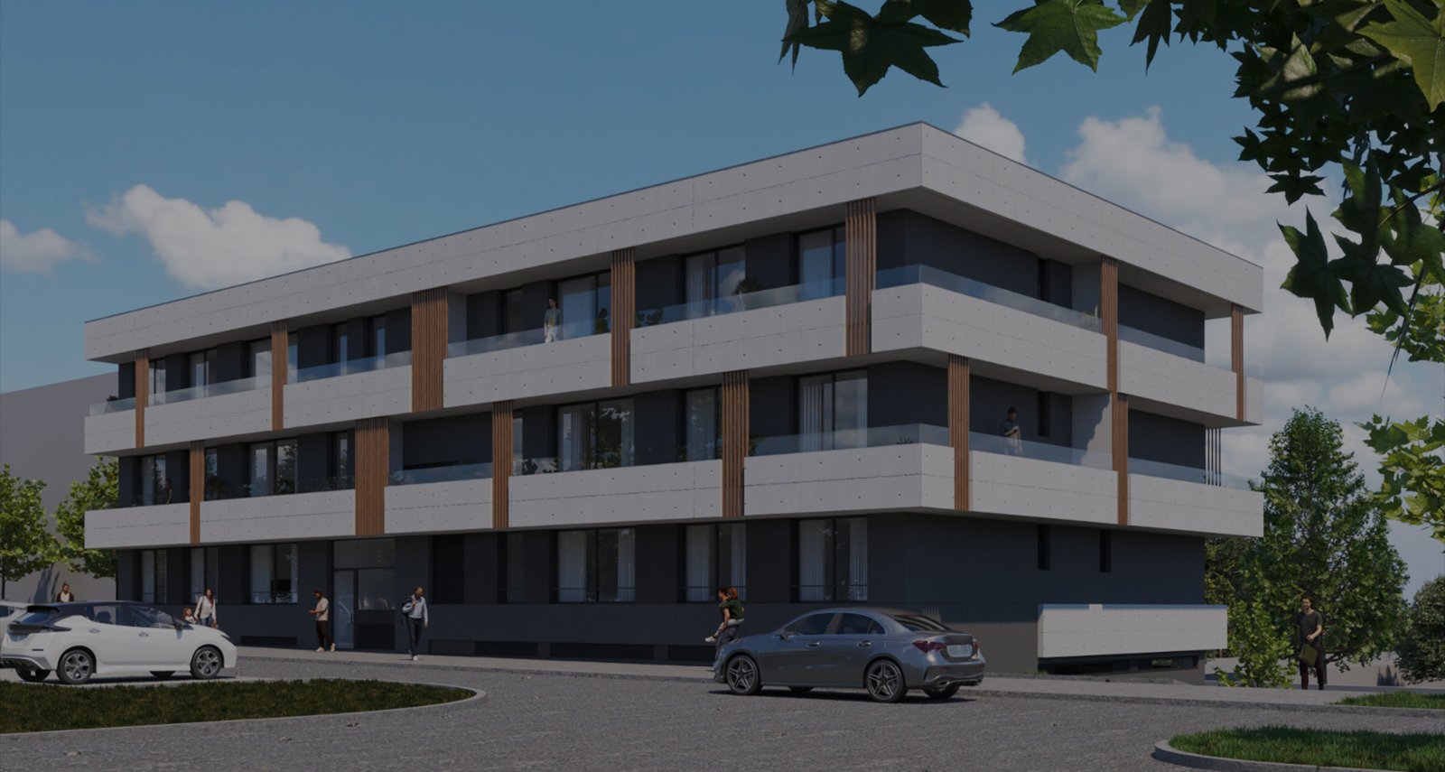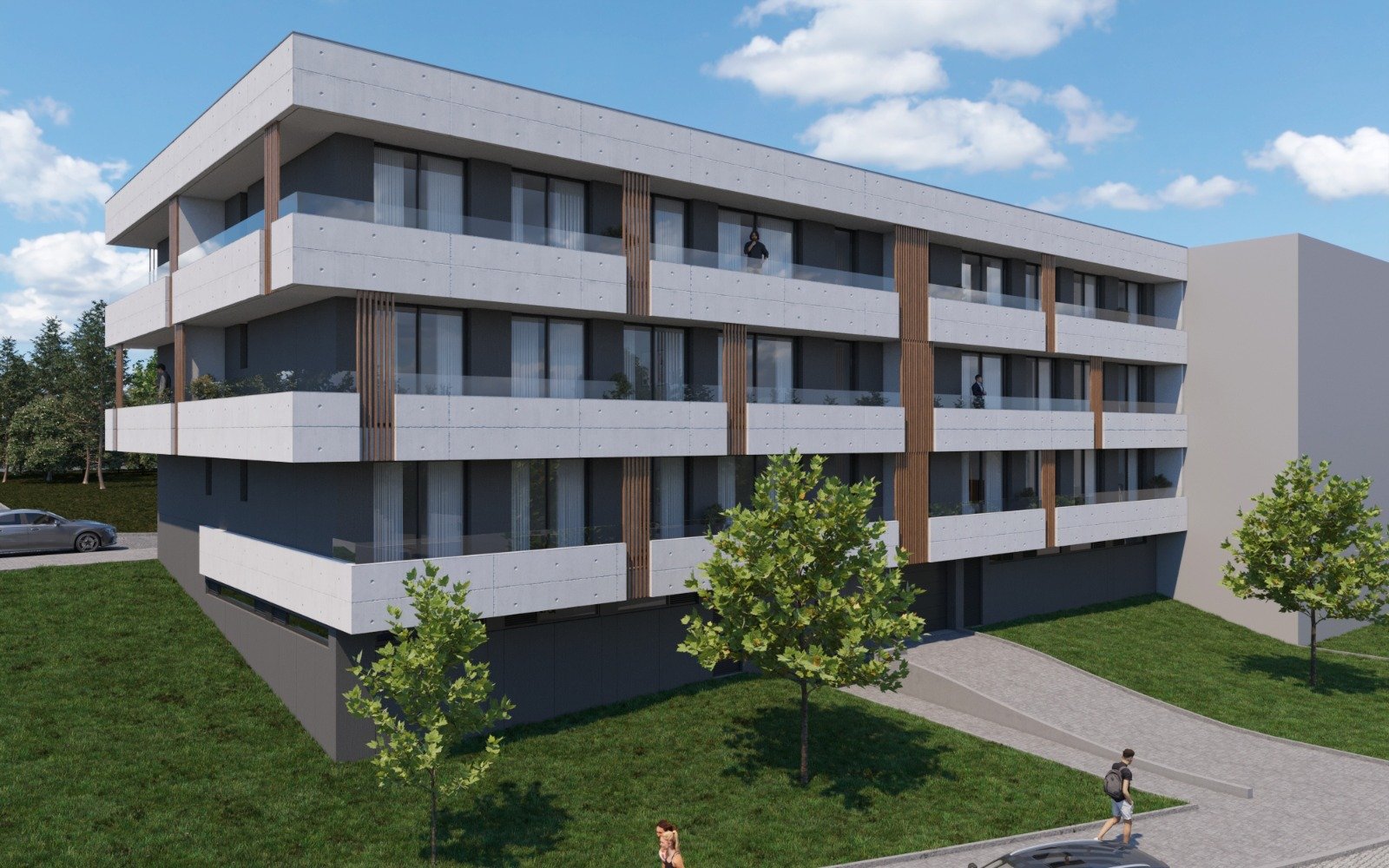 Apartamentos T3 (123m²) e T2 (102m²) com design moderno, amplas varandas e garagem privativa, pensados para quem valoriza espaço, luz natural e elegância no dia a dia.