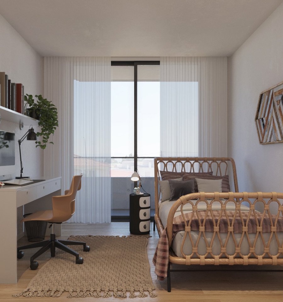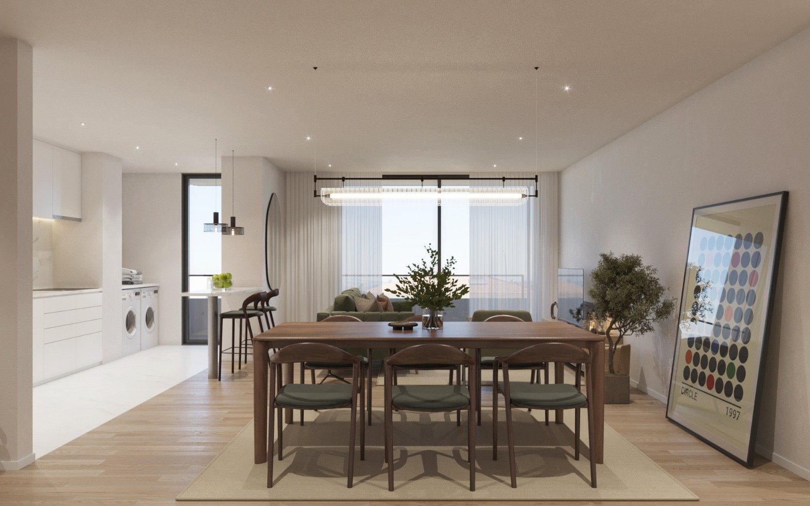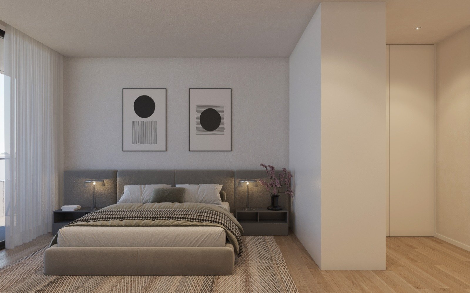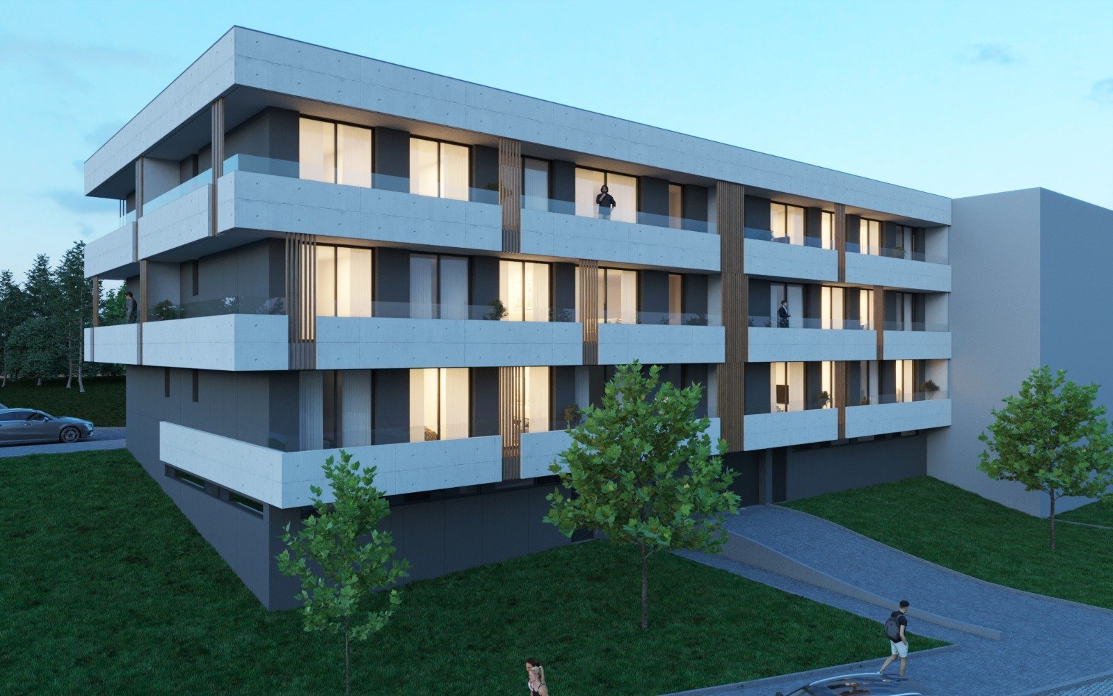 Apartamentos T3 (123m²) e T2 (102m²) com design moderno, amplas varandas e garagem privativa, pensados para quem valoriza espaço, luz natural e elegância no dia a dia.